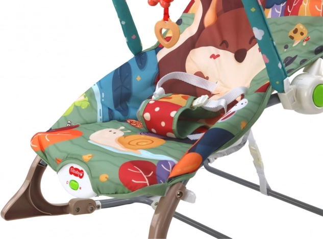 Stabilna metalowa konstrukcja z antypoślizgową podstawą i trzypunktowym pasem chroni dziecko podczas siedzenia i bujania. Pokrowiec z motywem leśnych zwierzątek jest przyjemny w dotyku i łatwy w pielęgnacji. Dzięki kompaktowym wymiarom produkt łatwo przenosić i dopasować do każdego domu.