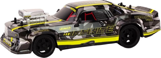 Stylowy samochód RC w skali 1:16 ucieszy wszystkich fanów szybkiej jazdy. Czarny sportowy design z żółtymi akcentami oraz gumowe koła o wysokiej przyczepności zapewniają pewny kontakt zarówno na gładkiej nawierzchni, jak i w trudniejszym terenie. Dzięki precyzyjnemu sterowaniu 2.4G umożliwia pełen zakres ruchu i efektowne drifty. Zasilanie 4× AA dla długiej zabawy, kontroler wymaga 2× AA.