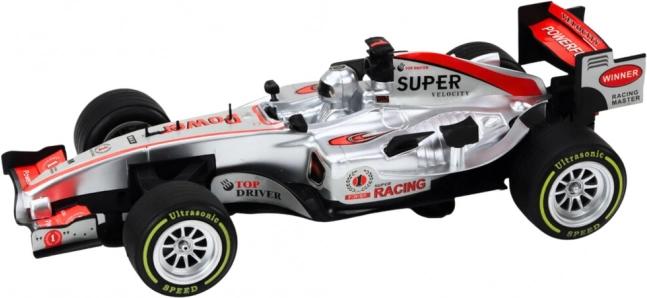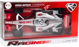 Stylowy wyścigowy samochód w srebrnym kolorze w skali 1:9 zachwyci małych i dużych fanów motoryzacji. Oferuje realistyczny wygląd, efekty świetlne i dźwiękowe oraz mechanizm napędu typu naciągnij i jedź dla dynamicznej jazdy. Duże czarne wyścigowe koła zapewniają dobrą przyczepność na różnych nawierzchniach, a sportowe spojlery nadają pojazdowi agresywny wygląd.
