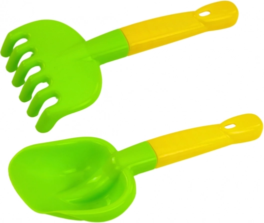 Zestaw zawiera łopatkę i grabki z zaokrąglonymi brzegami, które są idealne dla małych rąk i bezpieczne dla dzieci.