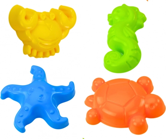 Foremki morskich stworzeń w tym konik morski, rozgwiazda, krab i żółw dodadzą zabawie zabawny wymiar i umożliwiają realizację interesujących rzeźb piaskowych. Zestaw jest w żywych kolorach, które przyciągną uwagę dzieci.