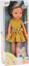 Słodka lalka o wysokości 33 cm jest idealna na codzienną zabawę. Ma delikatny makijaż, ubrana jest w żółtą sukienkę z wzorowanymi słoniami i białymi butami. Eleganckie ułożenie włosów zachęca do dziecięcej kreatywności.
