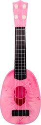 Ukulele dla dzieci jest wyposażone w cztery nylonowe struny, które zapewniają miękki dotyk przyjazny dla dziecięcych palców. Różowy kolor i motyw brzoskwini nadają instrumentowi wyjątkowy wygląd. Wykonanie z wytrzymałego plastiku bezpiecznego dla dzieci gwarantuje długą żywotność i lekkość. Dzięki temu każde dziecko może łatwo obsługiwać ten instrument i cieszyć się radością z nauki muzyki.