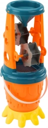 Kolorowy zestaw do piasku z młynkiem to kompletne akcesorium dla małych plażowiczów lub miłośników zabawy w piasku. Głównym elementem zestawu jest wiaderko z młynkiem, które ma z jednej strony praktyczne sitko do przesiewania piasku, a z drugiej lejek ułatwiający precyzyjne dozowanie piasku do konstrukcji. Dzięki temu praktycznemu rozwiązaniu zabawa jest bardziej efektywna i kreatywna.
