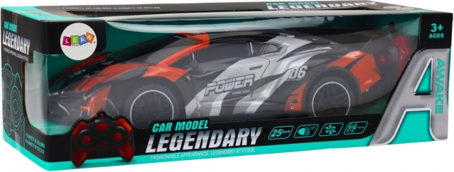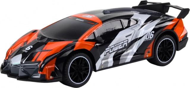Intuicyjny dwudźwigniowy kontroler zapewnia precyzyjne prowadzenie w zakresie kierunku i prędkości. Sportowa szaro‑pomarańczowa karoseria z napisami i tylnym spoilerem przyciąga wzrok od pierwszego spojrzenia i podkreśla dynamiczny charakter pojazdu.