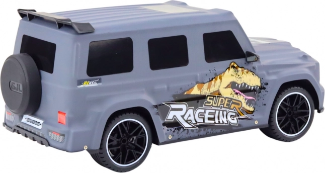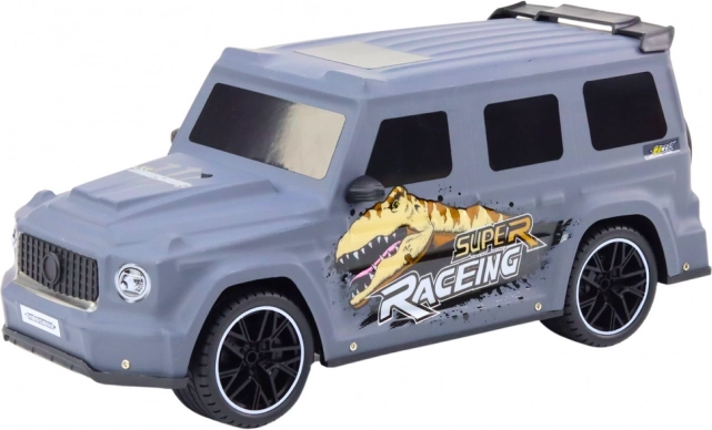 Stylowe RC auto w szarym kolorze z oryginalną grafiką dinozaura ucieszy małych i dużych fanów szybkiej jazdy. Realistyczne przednie światła uprzyjemnią jazdę także o zmierzchu, a wysokiej jakości wykonanie zapewni długą żywotność. Świetny wybór na prezent dla dzieci od 3 lat.