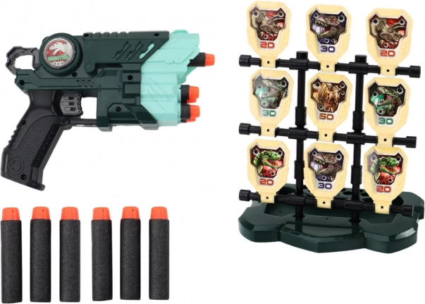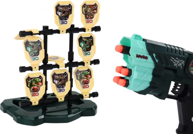 Zestaw strzelecki z motywem dinozaurów, zaprojektowany dla dzieci, oferuje wyjątkowe wrażenia z zabawy łączące rozrywkę i rozwój umiejętności. Zawiera lekki i ergonomiczny pistolet, który umożliwia łatwą obsługę nawet mniejszym dłoniom.