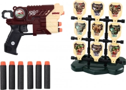 Zabawna tarcza z punktacją pozwala organizować zawody strzeleckie i doskonalić umiejętności celowania. Każda strefa na tarczy ma przypisane wartości punktowe, co wprowadza do gry element rywalizacji.