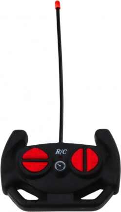 Czarny i czerwony pilot z oznaczeniem 'R/C' oferuje łatwą manipulację podstawowymi ruchami, co zapewnia świetne doświadczenie z jazdy.