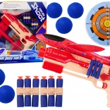 Zestaw zawiera tarczę z narysowanymi punktami. Dzieci mogą strzelać do tarczy piankowymi strzałkami, co nie tylko zapewnia zabawę, ale także rozwija koncentrację i celność.