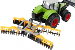 Główną cechą traktora jest jego w pełni funkcjonalna brona talerzowa, która pozwala dzieciom odtwarzać wymagające prace rolnicze. Funkcja składania i rozkładania zwiększa realizm i różnorodność zabawy. Ładowacz czołowy jest idealny do załadunku piasku, ziemi lub klocków.