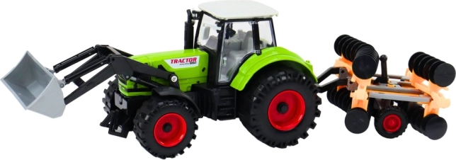 Traktor z broną talerzową i ładowaczem czołowym to wszechstronna zabawka, która zachwyca intensywnie zielonym wyglądem i zachęca do długiej zabawy. Wykonany z wysokiej jakości materiałów, zapewnia trwałość i odporność.