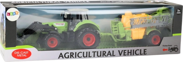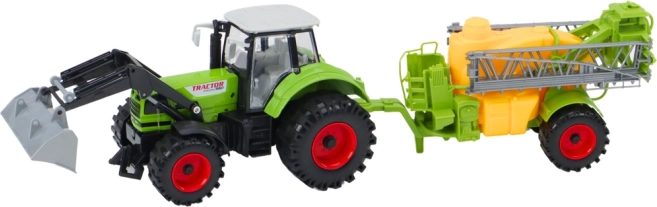 Traktor z ładowaczem i opryskiwaczem, zielony