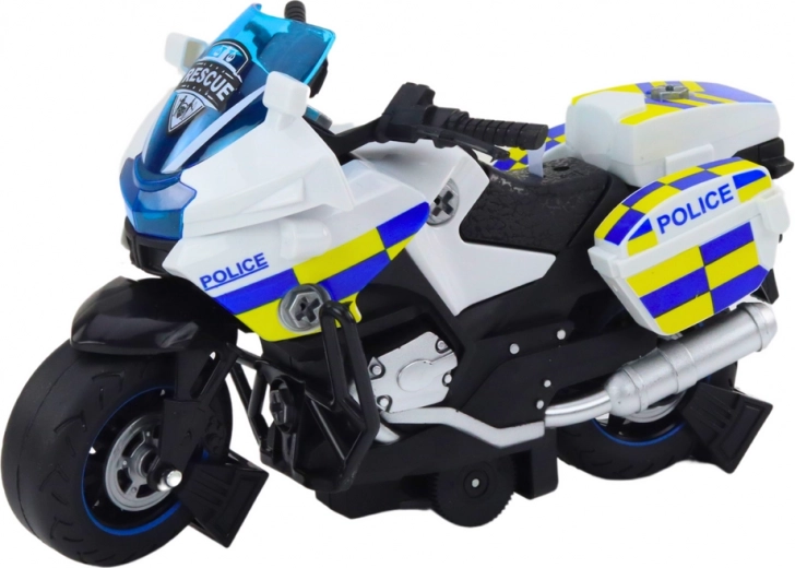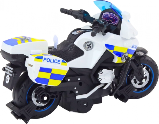 Policyjna motocyklowa zabawka DIY z obrotami, światła i dźwięk – biała