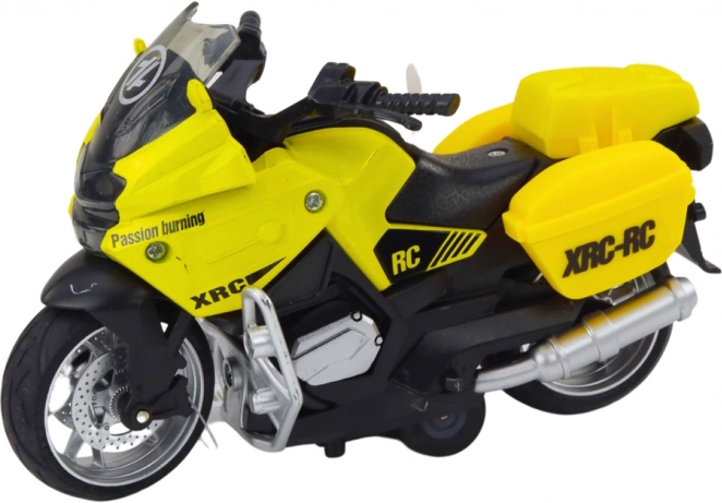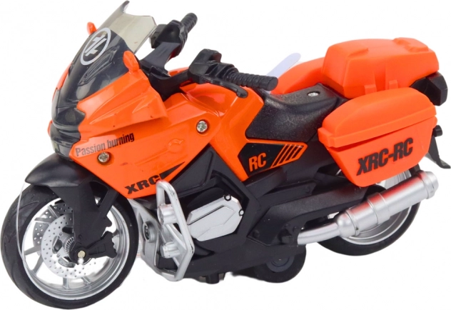 Ten motocykl wykorzystuje innowacyjny napęd cierny, który umożliwia realistyczny ruch do przodu. Wystarczy przesunąć motocykl do przodu lub cofnąć i puścić, aby zobaczyć jego dynamiczną jazdę.