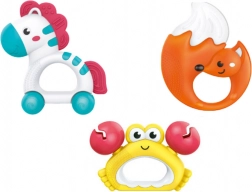 Ten zestaw zabawek dla niemowląt zawiera trzy urocze grzechotki w kształcie lisa, zebry i kraba. Każda grzechotka jest zaprojektowana w jasnych kolorach, które stymulują wzrok i zainteresowanie dziecka. Zawiera elementy grzechoczące dla rozwoju słuchu oraz gumowe części jako gryzaki, idealne na okres wyrastania ząbków.