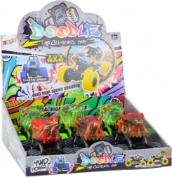 To wyjątkowa zabawka, która łączy dwie fascynujące kategorie: samochody i dinozaury. Auto ma kształt dinozaura, co nadaje mu niepowtarzalny i zabawny wygląd oraz łączy świat dinozaurów z pojazdem terenowym. Jest wyposażone w napęd, co oznacza, że może poruszać się do przodu lub do tyłu, zapewniając dynamiczną zabawę. Koła auta są osadzone na sprężynach, dzięki czemu może podskakiwać i unosić się w górę, co dodaje zabawie element akcji.