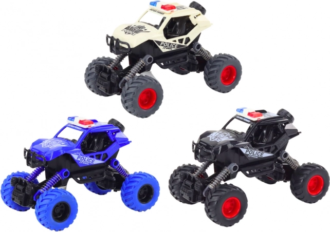 Samochodzik wyróżnia się realistycznym designem, który obejmuje detale takie jak syreny, światła i policyjne oznaczenia. Dzięki specjalnym sprężynom umożliwia spektakularne skoki, co pozwala Twojemu dziecku pokonywać przeszkody i wykonywać akrobacje.