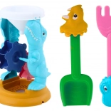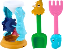 Ten kolorowy dinozaurowy zestaw do piasku zamieni każde popołudnie na plaży lub w piaskownicy w przygodę. Dzieci pokochają młynek z motywem dinozaurów, przez który mogą przesiewać piasek lub przelewać wodę i obserwować, jak obracają się łopatki. Foremki pomogą tworzyć oryginalne budowle i dinozaurowe ślady, a jednocześnie rozwijają małą motorykę i wyobraźnię.