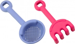 Grabki i sitko pomogą wyrównać powierzchnię, przesiewać piasek i tworzyć precyzyjne detale. Świetne do budowy zamków i delikatnego modelowania.