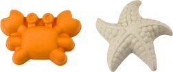 - wiaderko, młynek wodny/piaskowy, sitko, grabki, 2 foremki (rozgwiazda i krab)