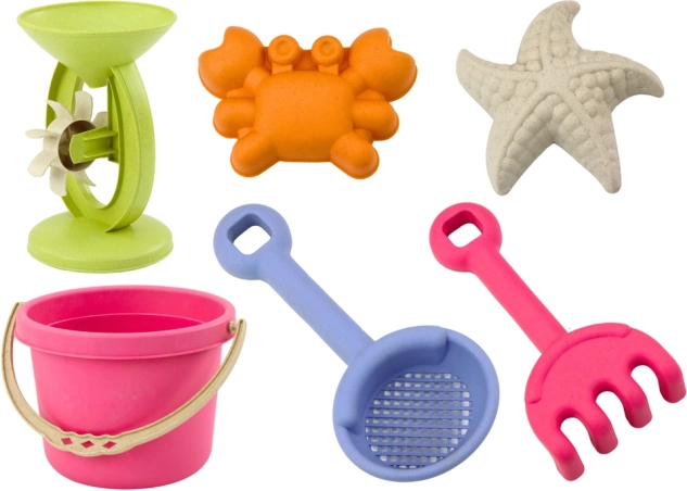 Rozwijaj dziecięcą wyobraźnię dzięki temu pastelowemu zestawowi zabawek do piasku, który zawiera wiaderko, młynek wodny/piaskowy, sitko, grabki oraz 2 foremki. Wykonany z wytrzymałego plastiku, idealny na piaskownicę i plażę. Spełnia normy CE/EN71 i jest odpowiedni dla dzieci od 3 lat.