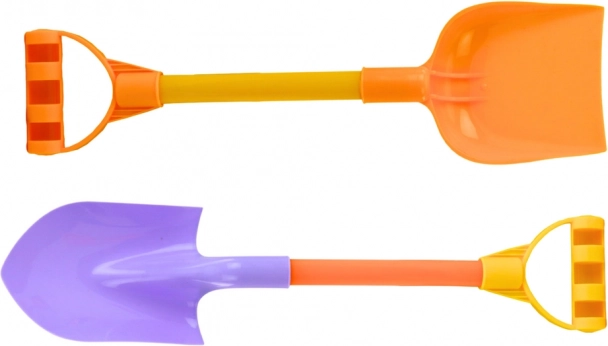 - Dwie łopatki: Fioletowa łopatka do precyzyjnego modelowania detali oraz pomarańczowa łopatka do przenoszenia większej ilości piasku.