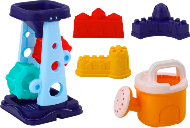 - Młynek: Świetny do przesypywania piasku lub tworzenia ciekawych efektów wodnych.