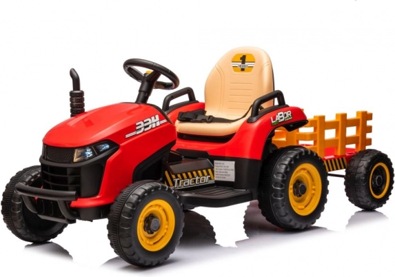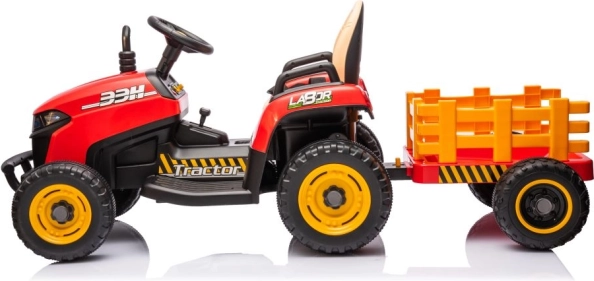 Podaruj dziecku własny traktor z przyczepą i obserwuj, jak przewozi zabawki, liście lub drobiazgi po ogrodzie. Solidne wykonanie, bezpieczne siedzisko i proste sterowanie kierownicą gwarantują wygodną i pełną frajdy jazdę. Czerwone wykończenie z kontrastowymi żółtymi elementami wygląda świetnie i przyciągnie uwagę każdego małego kierowcy.