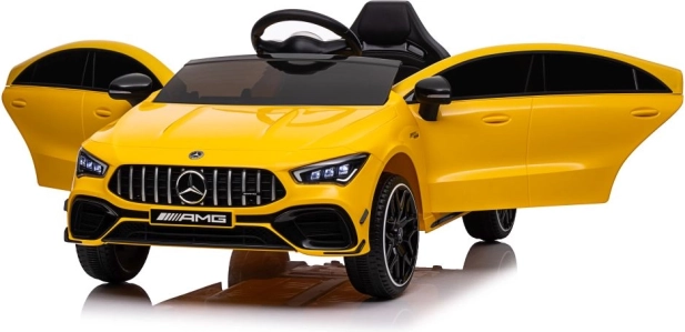 Licencjonowany elektryczny samochód MERCEDES CLA 45 S AMG ucieszy każdego małego fana sportowych aut. Żółte wykonanie, wierne logo AMG i realistyczne elementy, takie jak światła, kierownica i deska rozdzielcza, dopełniają prawdziwych wrażeń z jazdy. Solidne wykonanie z tworzywa i wygodne siedzisko zapewniają komfort nawet podczas dłuższej przejażdżki.