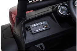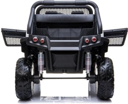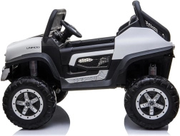 Realistyczny wygląd podkreślają otwierane drzwi, autentyczny grill i podświetlany kokpit. Mocny zestaw silników 4 × 45 W zasilany akumulatorem 12 V 14 Ah zapewnia płynny start i odpowiednią moc. Rodzice mają wszystko pod kontrolą dzięki pilotowi RC – mogą sterować prędkością, kierunkiem i w razie potrzeby w porę zatrzymać pojazd. Produkt spełnia normy bezpieczeństwa (certyfikat CE) i jest odpowiedni od 3. roku życia.