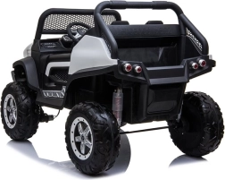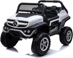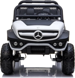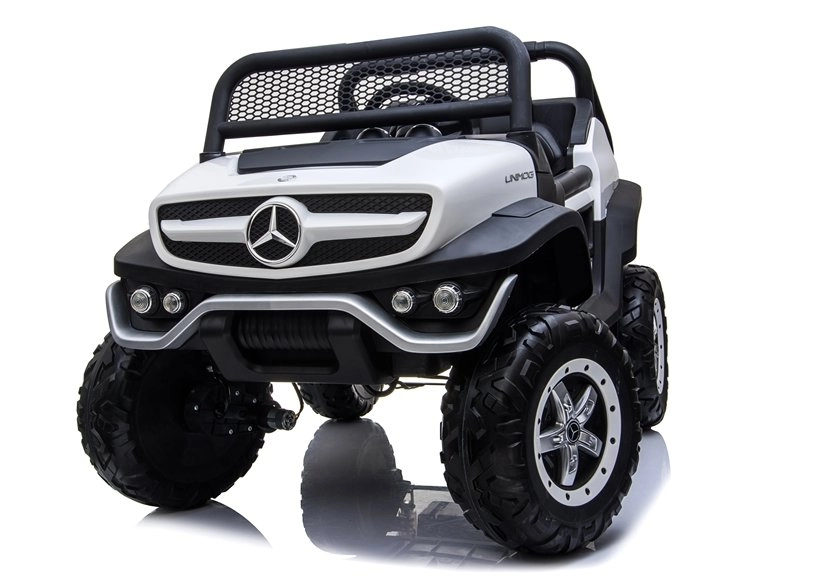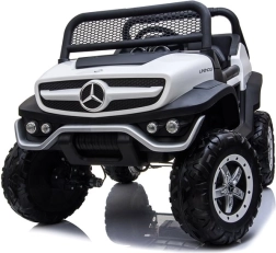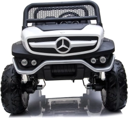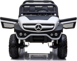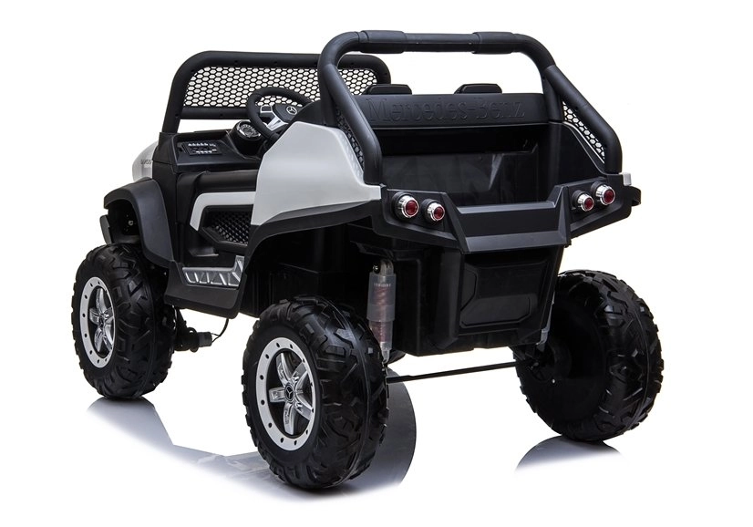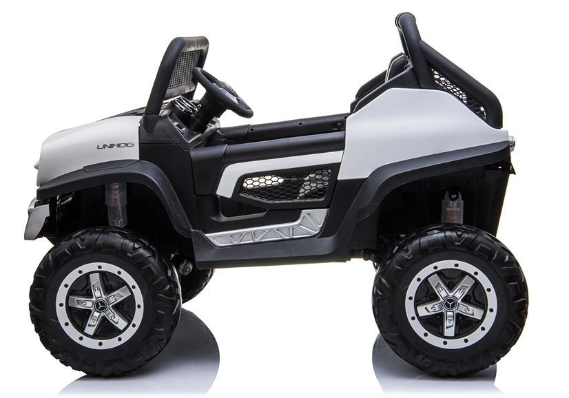 Solidny dziecięcy elektryczny samochód Mercedes Unimog 4x4 w białym kolorze zapewnia realistyczne wrażenia z jazdy. Dzięki napędowi na wszystkie koła, mocnym silnikom i wytrzymałej konstrukcji poradzi sobie nawet w trudniejszym terenie. Otwierane drzwi, podświetlana deska rozdzielcza oraz zdalne sterowanie dla rodziców gwarantują bezpieczną i świetną zabawę już od 3 lat.