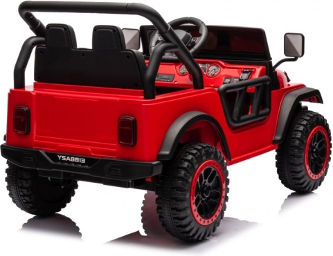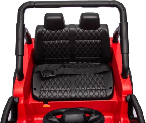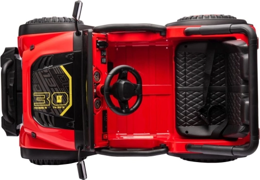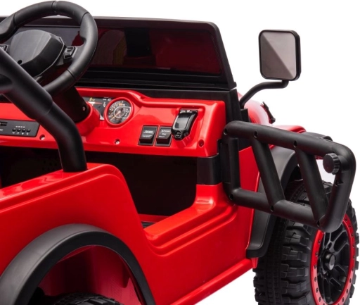 Samochód elektryczny został zaprojektowany z wykorzystaniem wytrzymałych materiałów, co gwarantuje długotrwałą zabawę i bezpieczeństwo dla dzieci.