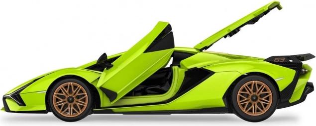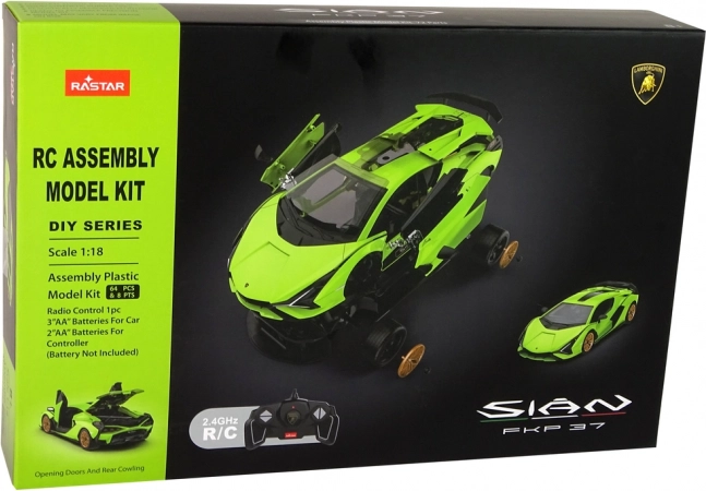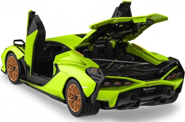Wiernie odwzorowane nadwozie licencjonowanego modelu LAMBORGHINI SIAN FKP 37 z podkreślonymi liniami i funkcjonalnymi drzwiami dla maksymalnego realizmu.