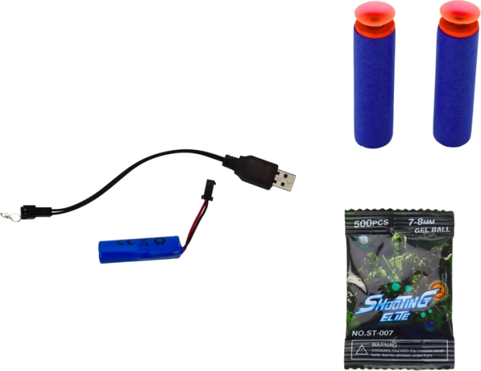Pistolet jest zasilany baterią 3,7 V 500 mAh, która znajduje się w zestawie. W opakowaniu dołączona jest ładowarka.