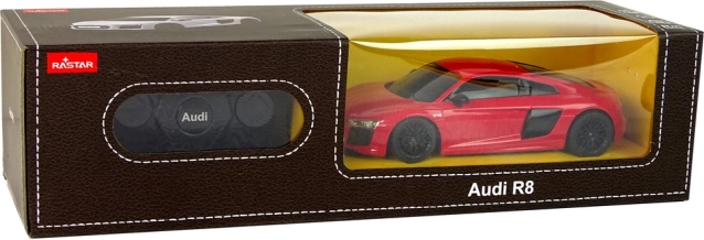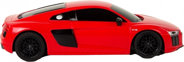 Odkryj świetny sportowy samochód AUDI R8 jako zdalnie sterowany model w skali 1:24. Czerwony lakier, przyciemniane szyby i precyzyjnie odwzorowane linie nadwozia podkreślają wierność oryginałowi. Model wykonano z wytrzymałego plastiku, a dzięki gumowym kołom dobrze jeździ po gładkich podłogach i mniej równych powierzchniach.