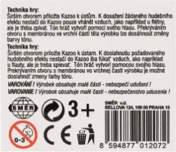 Plastikowa konstrukcja jest wytrzymała, a dzięki długości 12 cm kazoo łatwo nosić w kieszeni lub plecaku.