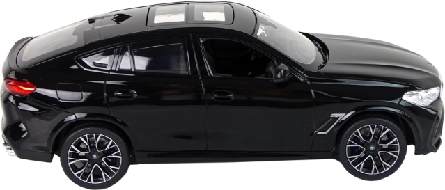 Ten licencjonowany model BMW X6 M w skali 1:14 wyróżnia się eleganckim czarnym lakierem, precyzyjnie wykonanym wnętrzem i realistycznymi proporcjami. Zintegrowane przednie i tylne światła potęgują wrażenie prawdziwej jazdy, także przy słabszym oświetleniu.
