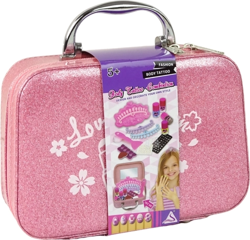 Odkryj czarujący zestaw dla małych stylistek – kompaktową różową błyszczącą walizeczkę pełną akcesoriów do paznokci. Dzięki łatwemu zamkowi błyskawicznemu, solidnej rączce i lusterku w środku dzieci mogą bezpiecznie i wygodnie tworzyć swoje pierwsze paznokciowe kreacje w dowolnym miejscu. Zestaw zawiera 4 kolorowe lakiery, płytkę do stemplowania, naklejki i kryształki, separatory do palców oraz inne przybory do kreatywnego zdobienia paznokci.