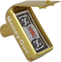 Strzelający pistolet na banknoty to wyjątkowy gadżet. Kreatywny wyrzutnik przyciąga uwagę swoim nietypowym designem. Wyrzutnik banknotów w kształcie pistoletu wykonany jest z wysokiej jakości materiałów i stanowi świetną zabawkę.
