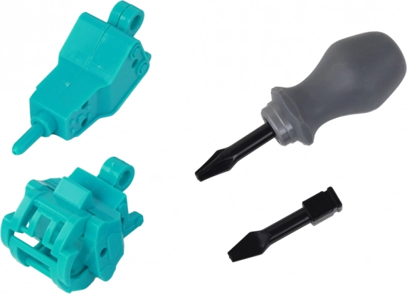 Zestaw zawiera śrubokręt i śrubki, dzięki którym koparkę można łatwo rozłożyć i złożyć ponownie. Dzieci rozwijają w ten sposób małą motorykę i umiejętności techniczne.