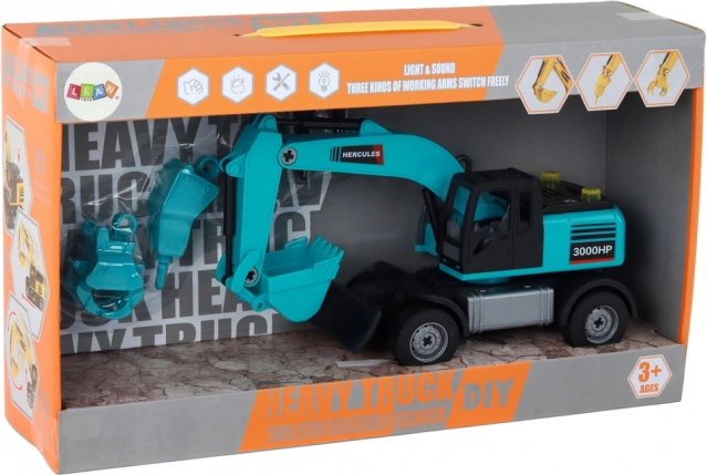Koparka budowlana DIY w niebiesko-czarnym wydaniu została zaprojektowana tak, aby bawić i uczyć. Dzięki dołączonemu śrubokrętowi i śrubkom dzieci mogą rozkładać model na dziesiątki elementów i ponownie go składać, ćwicząc zręczność i zrozumienie działania maszyn. Bardziej realistyczne wrażenia zapewniają efekty świetlne i dźwiękowe, które ożywią każdą budowę w pokoju dziecięcym.
