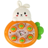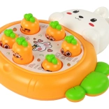 Animowane grafiki króliczka wprowadzają zabawowy nastrój. Zestaw obejmuje specjalną planszę, na której umieszczono sześć marchewek. Marchewki wyskakują z losowych otworów na planszy, co czyni grę bardziej emocjonującą i nieprzewidywalną.