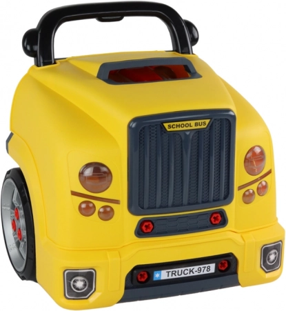 Żółty autobus warsztatowy dla małych majsterkowiczów łączy zabawę z nauką: dzieci mogą pojazd rozkręcać i składać na nowo, odkrywać otwieraną maskę i koła, sterować kierownicą z klaksonem, cieszyć się efektami świetlnymi i dźwiękowymi, a dzięki dwóm dużym kołom swój mobilny zestaw warsztatowy łatwo przewozić.