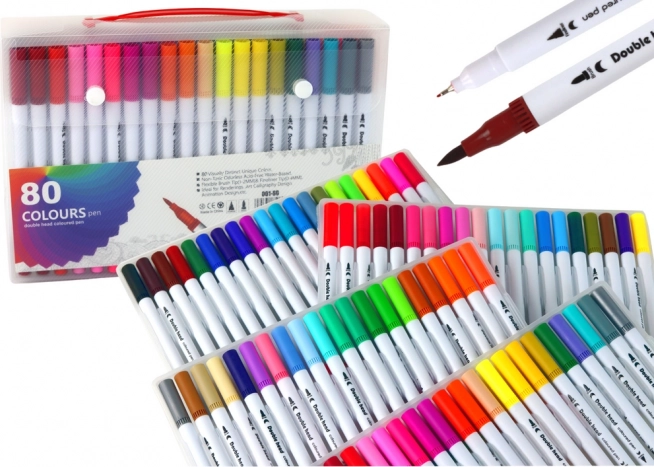 Odkryj nieograniczone możliwości artystyczne z naszymi dwustronnymi pisakami. Zestaw zawiera 80 różnokolorowych dwustronnych pisaków, które pozwalają wyrazić twoją kreatywność w najbarwniejszych odcieniach. Niezależnie od tego, czy jesteś profesjonalnym artystą czy początkującym entuzjastą, nasze pisaki spełnią twoje oczekiwania pod względem jakości i różnorodności.