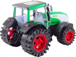 Ten plastikowy traktor rolniczy w zielonym kolorze zapewnia dzieciom autentyczne wrażenia ze świata rolnictwa. Dzięki napędowi inercyjnemu traktor po poruszeniu płynnie rusza, co nadaje zabawie bardziej realistyczny i angażujący charakter. Solidne wykonanie i wyraziste koła sprostają codziennej zabawie.