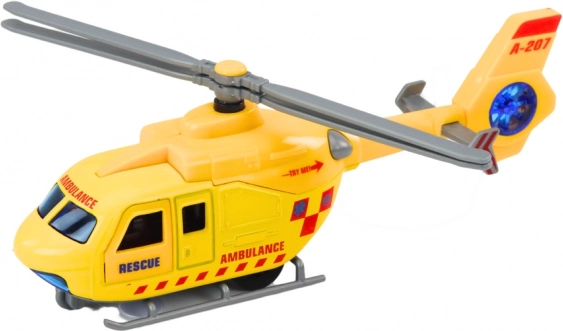 Zaoferuj dzieciom dynamiczną zabawę ze śmigłowcem ratunkowym z realistycznymi efektami. Posiada sygnały świetlne i dźwiękowe, otwierane drzwi, napęd frykcyjny kół oraz dwa obrotowe wirniki dla jeszcze bardziej autentycznej gry.