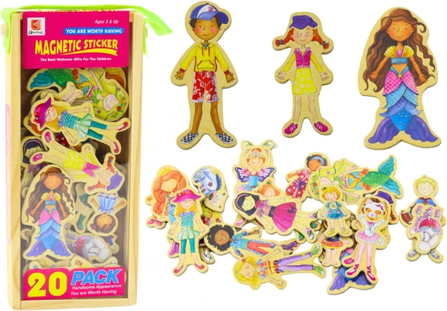 Drewniane magnetyczne figurki to wyjątkowy zestaw, który zawiera 20 różnych postaci w kolorowych kostiumach. Każda figurka ma swój unikalny charakter i design, co pozwala dzieciom bawić się i rozwijać swoje umiejętności narracyjne.