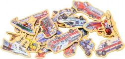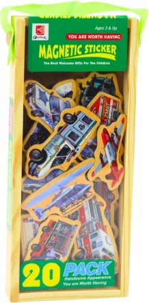 Zestaw zawiera 20 różnych drewnianych magnesów, każdy z unikalnym designem, gdzie znajdziemy pojazdy, statki i samoloty, które pomagają dzieciom rozwijać ich zrozumienie różnorodnych środków transportu.
