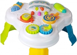 Edukacyjny stolik dla niemowląt oferuje wiele zalet. Zawiera interaktywny tort, który po naciśnięciu przycisków gra piosenki i dźwięki, na przykład 'Sto lat'. To idealny prezent urodzinowy dla Twojego dziecka.